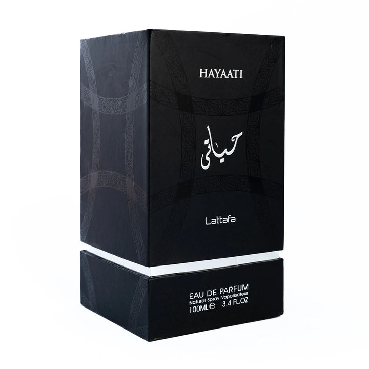 Perfume Hayaati Eau de Parfum by Lattafa Perfumes is an elegant, warm and spicy men's perfume. The top notes open warm and spicy with nutmeg, pink pepper, ginger and bergamot. The heart notes offer a blend of incense, cedar, labdanum and woody notes.